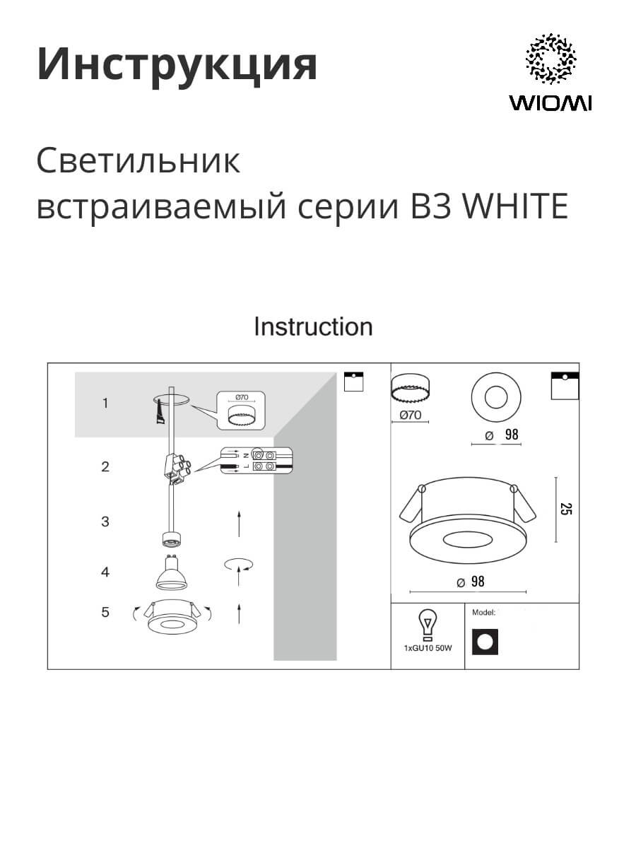 Комплектация: Светильник, патрон GU10, термокольцо, соединительная клемма