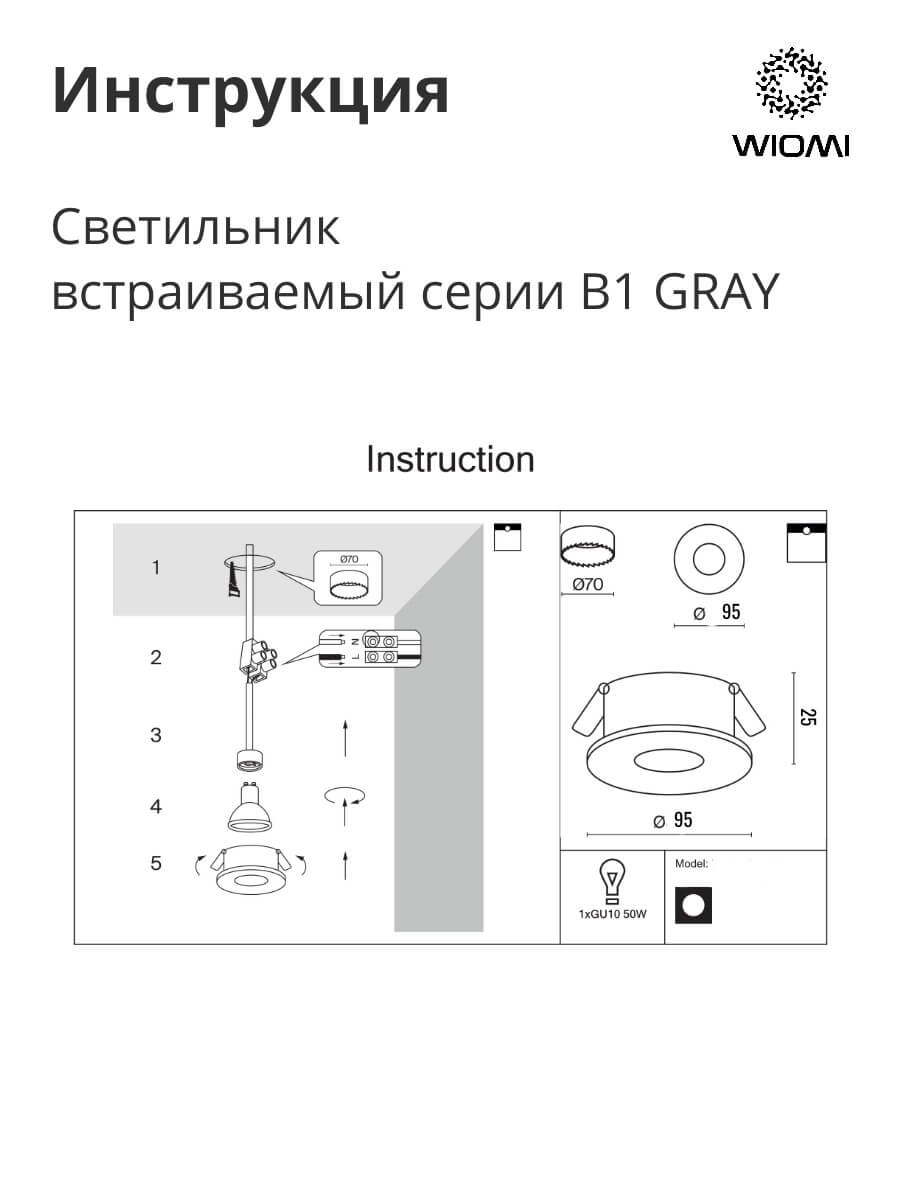 Комплектация: Светильник, патрон GU10, термокольцо, соединительная клемма